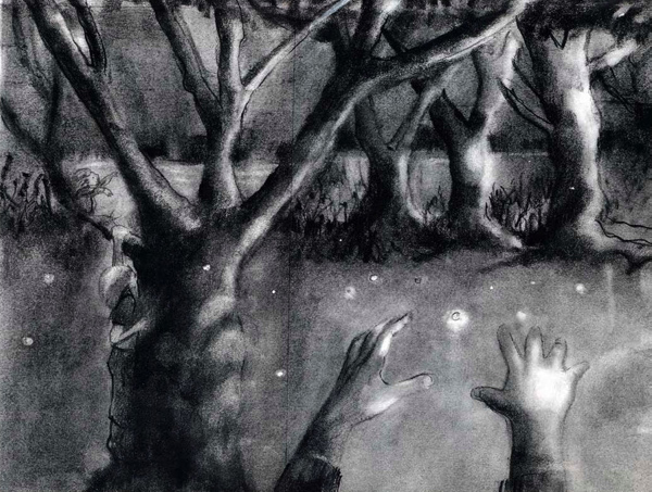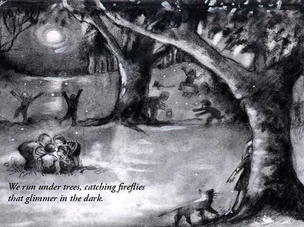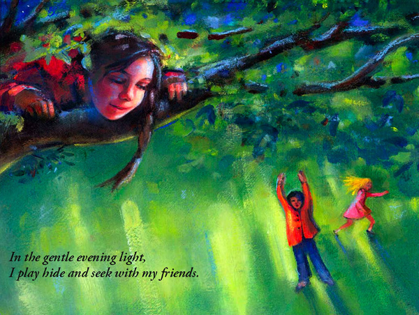 was written as a bedtime story to give young children an appreciation of the beautiful night sky -- instead of being afraid of the dark, youngsters can enjoy the dark...The story is wondrously illustrated by Elena Matera. (click images to enlarge)